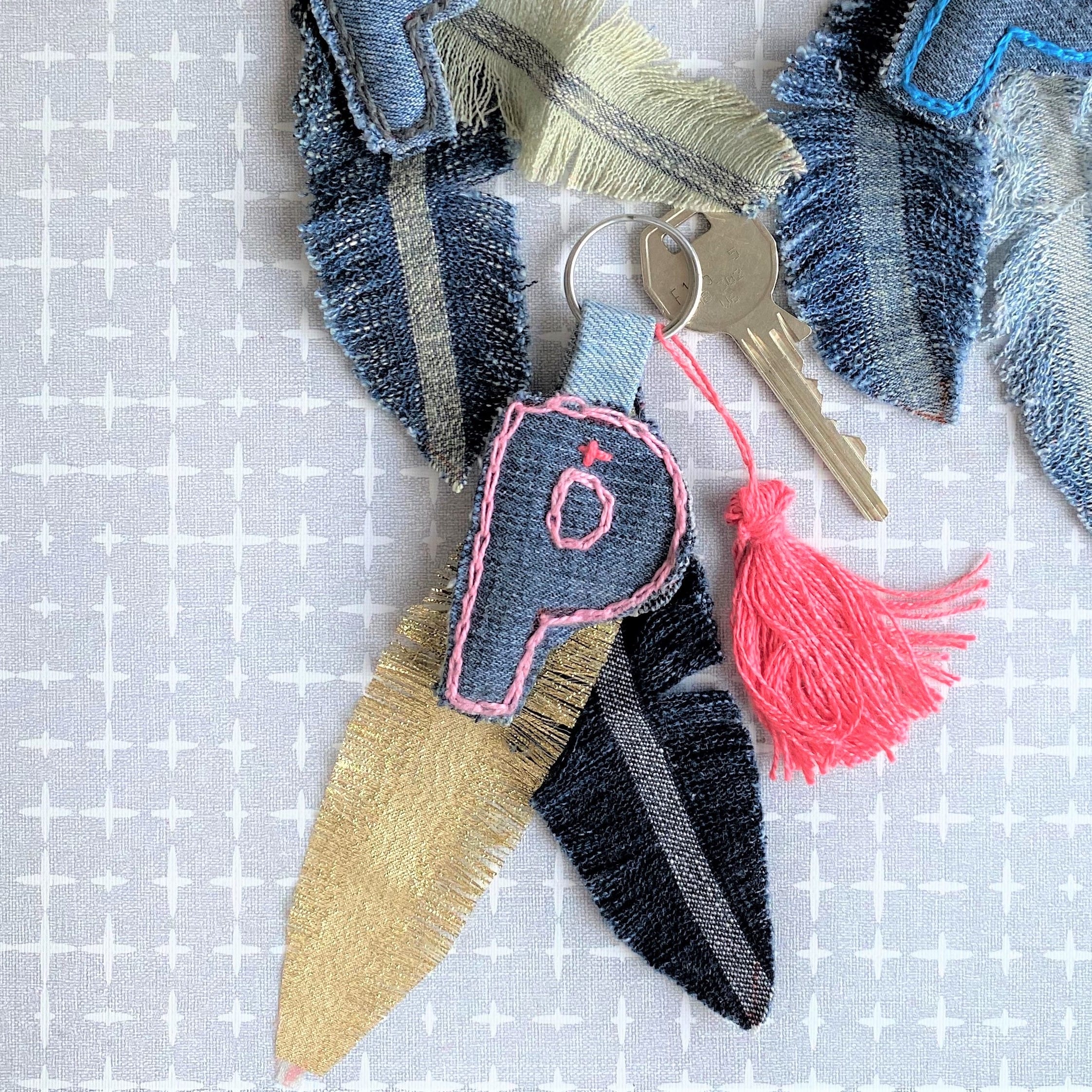 • Handcrafted out of Recycled Vintage Denim, Upscaled Trendy Denim Keychain, in Alphabet motif.