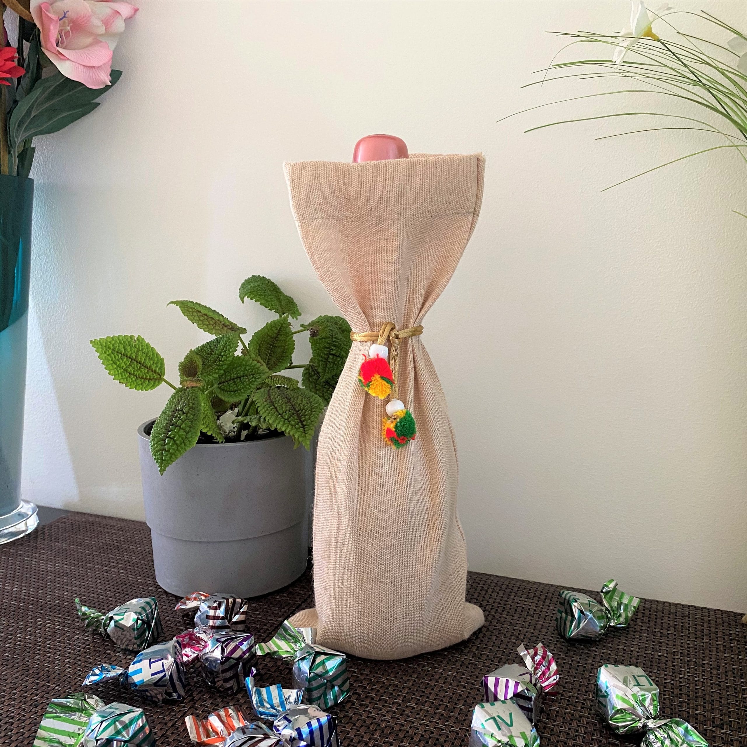 Atul Pack of 3 Single Bottle Natural Eco-Friendly Excellent Quality Jute Champagne Wine Bottle Carrier Bags BG-032